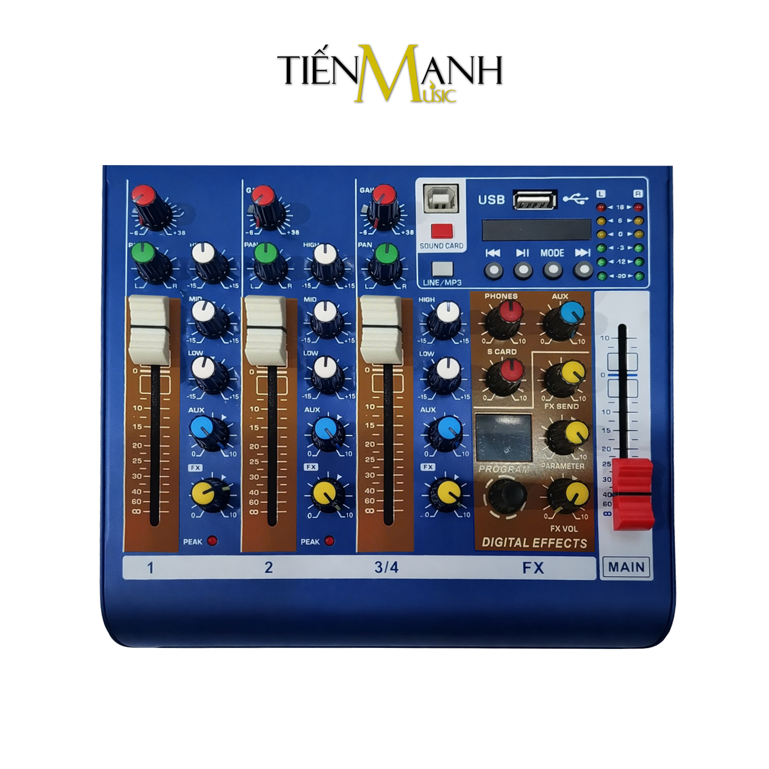 - Ngõ ra: Main out, Aux, headphone, Rec