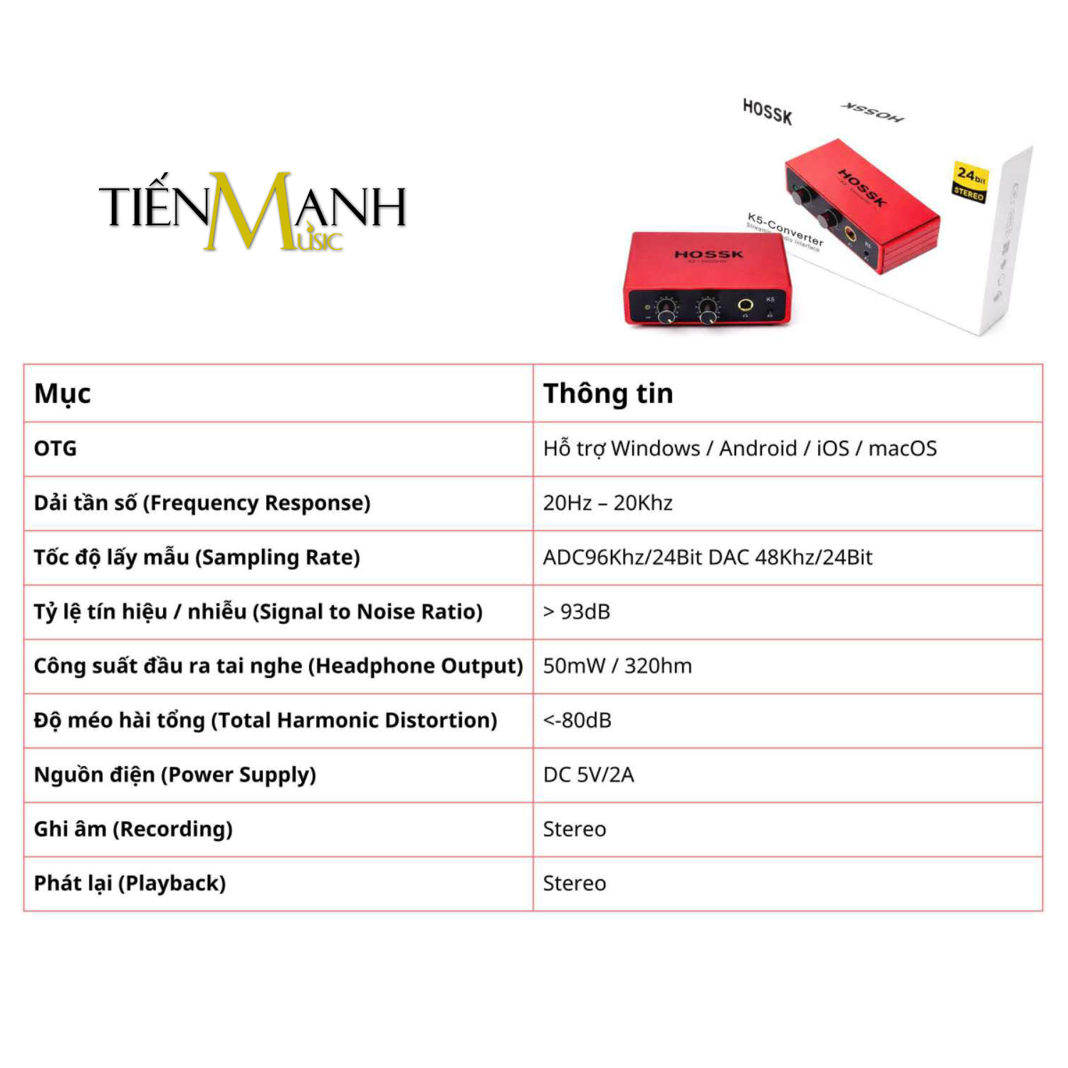 - Tần số lấy mẫu: 48kHz