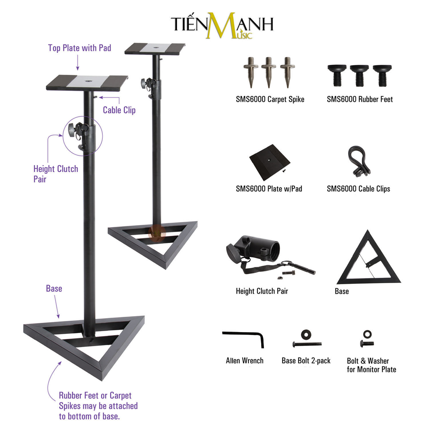 - Nếu bạn đang tìm một cặp chân vững vàng cho set loa kiểm âm, DJ của mình thì không thể bỏ lỡ cặp chân bán khá chạy từ hãng On-Stage (Mỹ) - SMS6000 đế tam giác! Nó cho phép bạn nâng loa, xoay trục tùy ý, ngoài ra trên bề mặt đế đỡ loa còn có đệm mút mỏng gia tăng ma sát đế loa không bị trượt và có khả năng chống rung nhỏ góp phần làm âm thanh phát ra từ loa trở nên chính xác hơn.