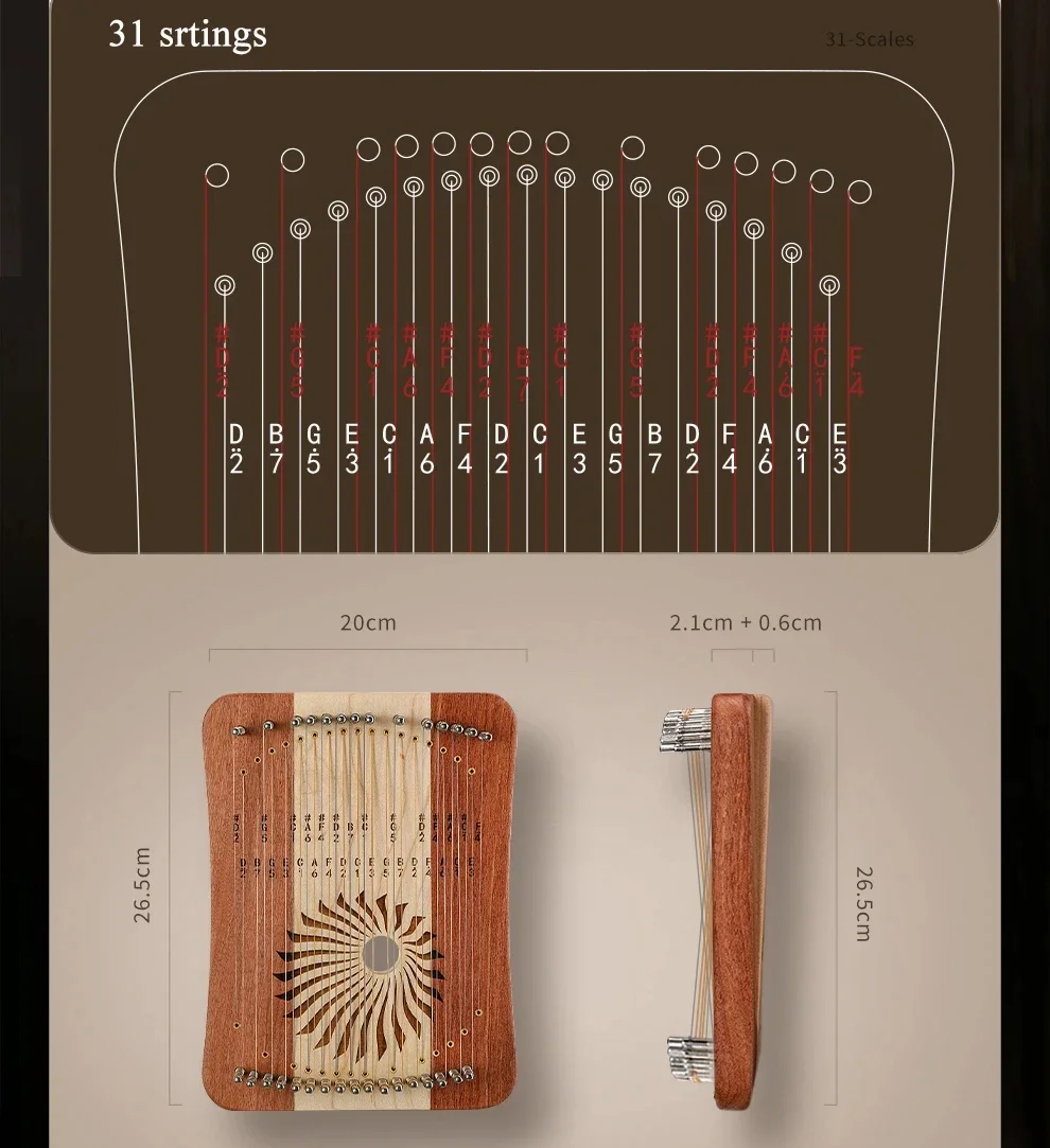 - 31 dây (chromatic) – chơi đủ nốt thăng/giáng